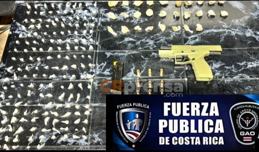 Un arma de fuego, municiones y aparente droga quedaron localizados por los oficiales de la Fuerza Pública, dirección policial adscrita…