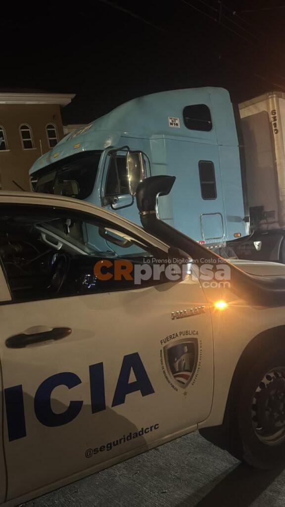 De acuerdo con el reporte oficial, tras recibir la alerta, unidades policiales se desplazaron hasta el sector de La Arena, específicamente en calle Guayabal, donde lograron ubicar el vehículo, el cual había sido robado en el sector de El Coyol de Alajuela. El camión transportaba motocicletas al momento del incidente.