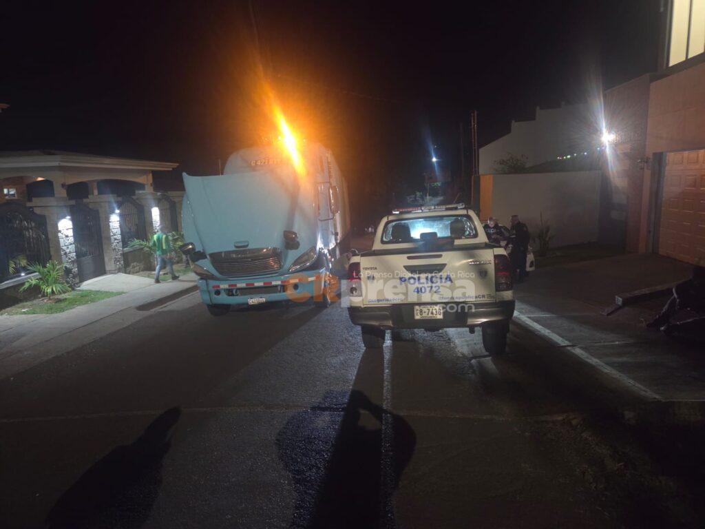De acuerdo con el reporte oficial, tras recibir la alerta, unidades policiales se desplazaron hasta el sector de La Arena, específicamente en calle Guayabal, donde lograron ubicar el vehículo, el cual había sido robado en el sector de El Coyol de Alajuela. El camión transportaba motocicletas al momento del incidente.