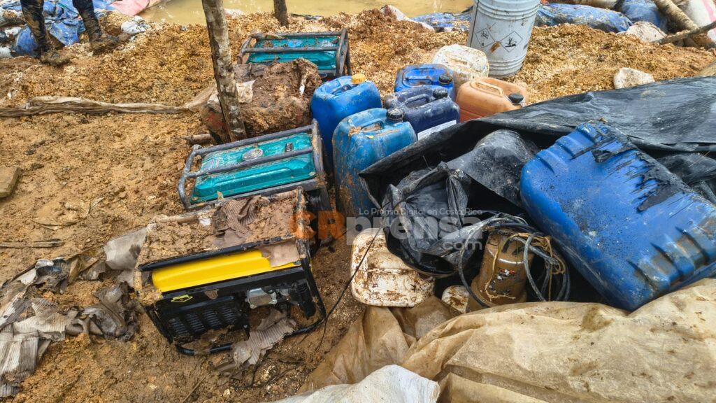 Así quedó de manifiesto cuando oficiales de la Fuerza Pública, gracias a la pericia que han ido adquiriendo, descubrieron un sitio donde los oreros enterraron ocho plantas eléctricas, seis bombas sumergibles para agua y 13 pichingas para combustible.