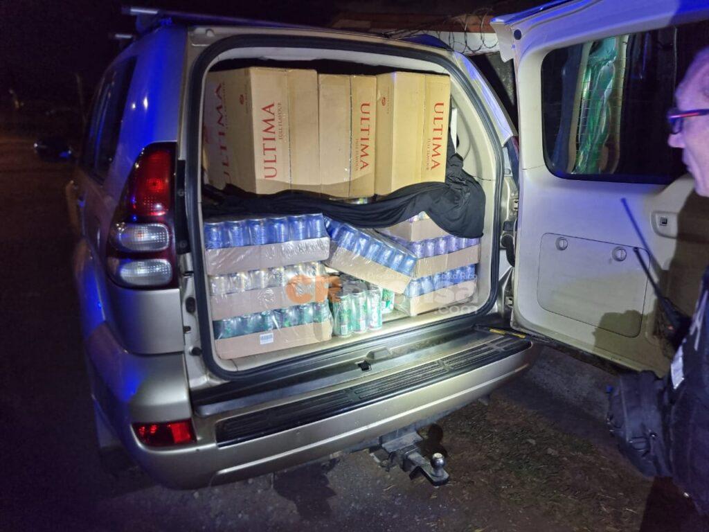 Tras la inspección, los oficiales observaron licor y cajas de cigarrillos dentro del automotor. Al ser consultado, el sospechoso indicó no contar con facturas que respaldaran la tenencia de la mercancía.