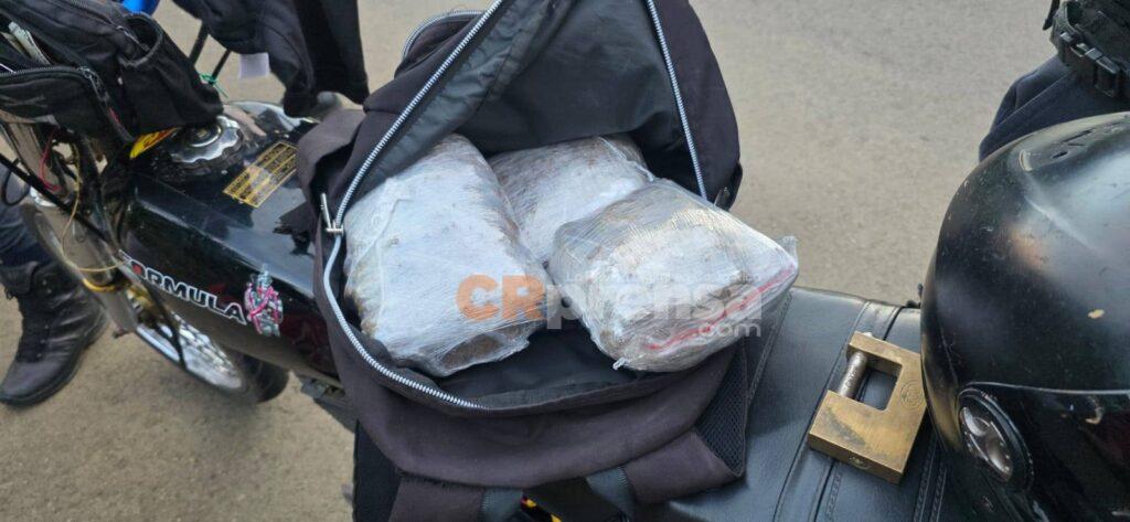 Luego de una rápida persecución, los agentes lograron interceptar la motocicleta, la cual era conducida por un sujeto de apellido Rodríguez. Durante la intervención, el individuo mostró de manera voluntaria un bolso en el que transportaba tres paquetes con aparente marihuana.