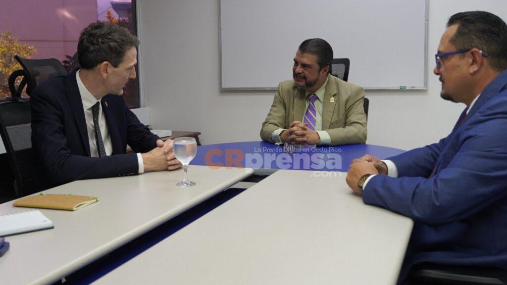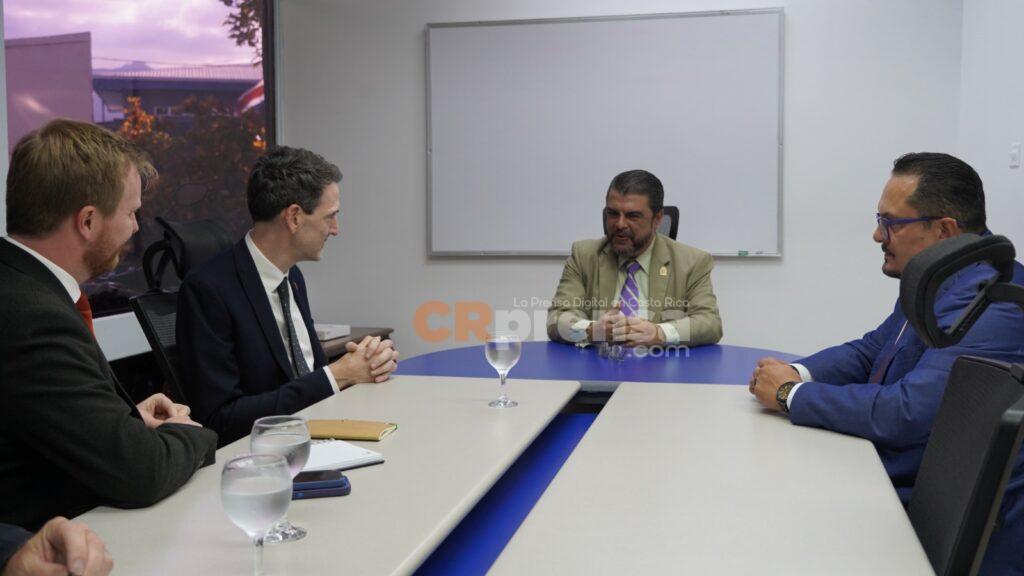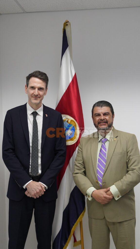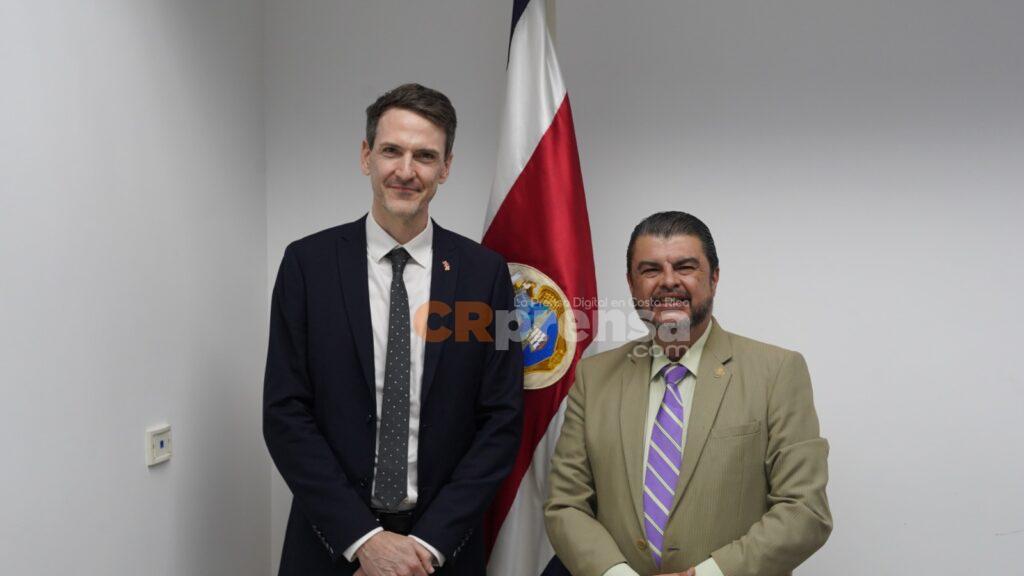 El ministro de Seguridad Pública, Mario Zamora, sostuvo una reunión con el nuevo embajador designado del Reino Unido en Costa Rica, Edward John Stevens, con el objetivo de fortalecer los lazos de cooperación bilateral en materia de seguridad.