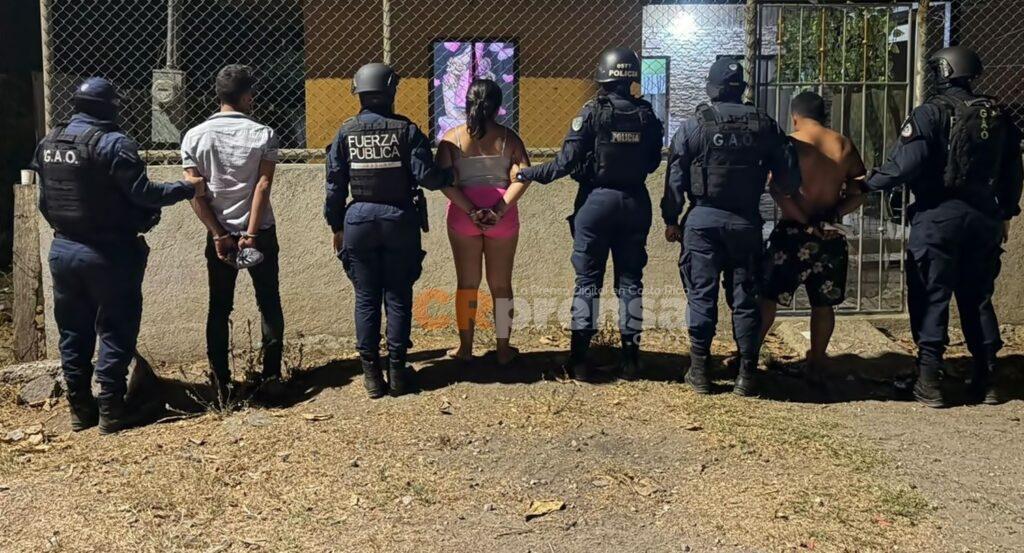 Los detenidos corresponden a dos hombres de nacionalidad costarricense, de apellidos Barrantes y Cruz, así como a una mujer de nacionalidad nicaragüense de apellido Chávez. Por disposición de la Fiscalía, los tres fueron aprehendidos en condición de flagrancia por su presunta participación en el delito de homicidio.