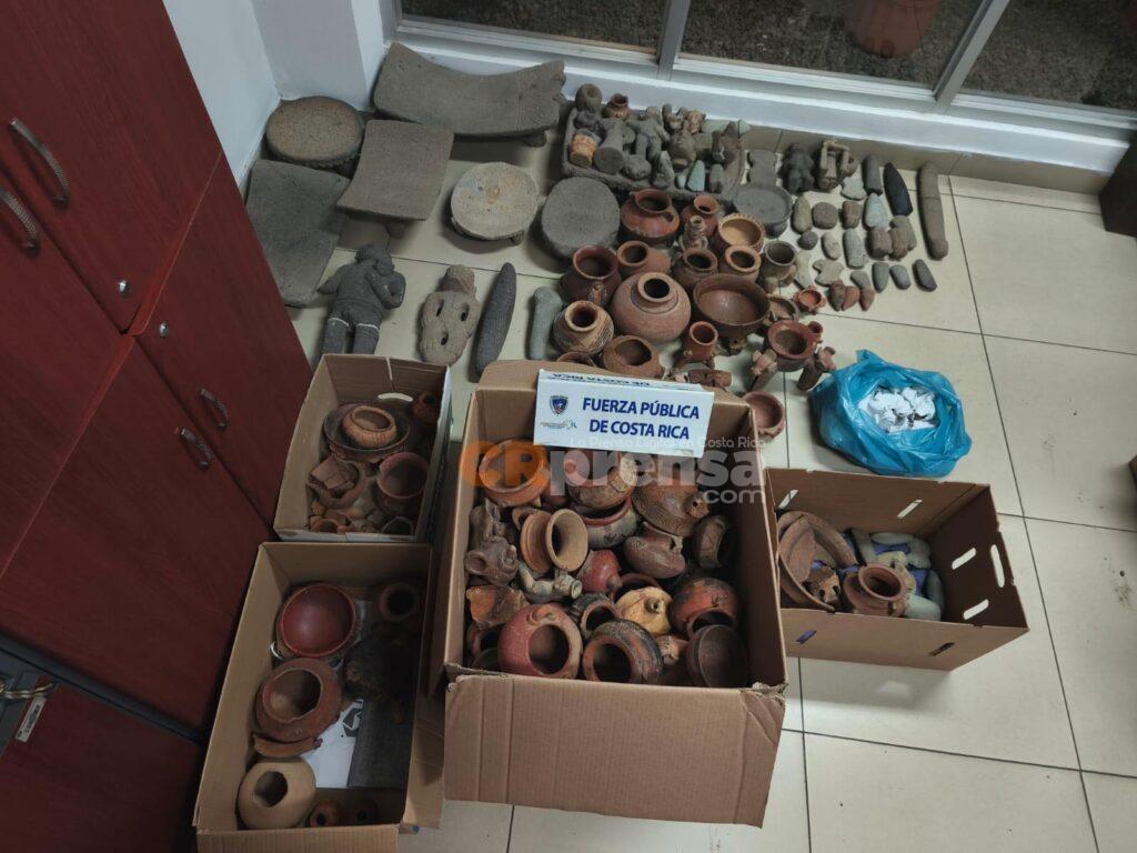 Oficiales de la Fuerza Pública ubicaron varios objetos con aparente valor arqueológico dentro de una vivienda en el sector de Pilas de San Isidro de Alajuela, como parte de una diligencia administrativa.