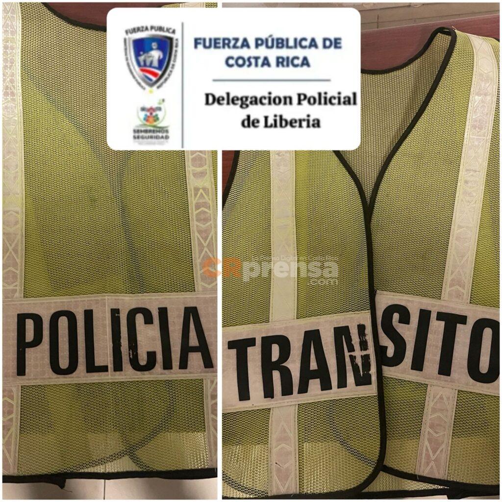 Un motociclista de 15 años de edad, el cual portaba un chaleco reflectivo con las inscripciones “POLICÍA” y “TRÁNSITO”, fue detenido por la Fuerza Pública durante un operativo efectuado en Liberia, Guanacaste.