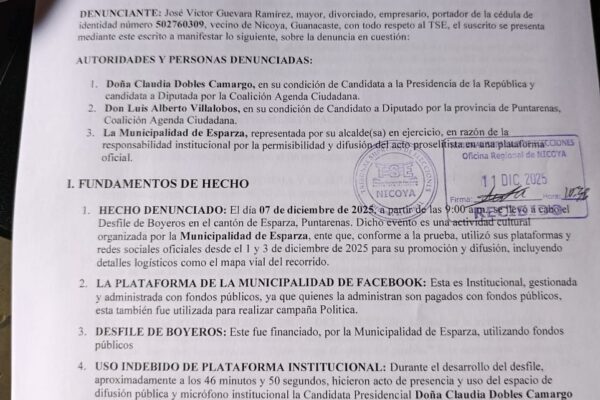 Una denuncia presentada ante el Tribunal Supremo de Elecciones (TSE) señala a la candidata presidencial Claudia Dobles Camargo y al…
