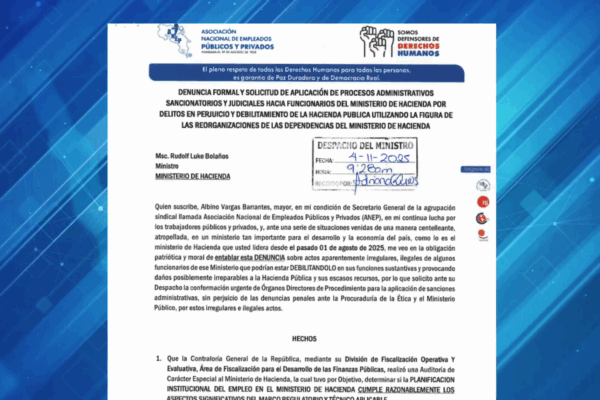 El Sindicato de Trabajadores y Trabajadoras del AyA (SITRAA) presentó una denuncia formal ante la Fiscalía de Probidad, Transparencia y…