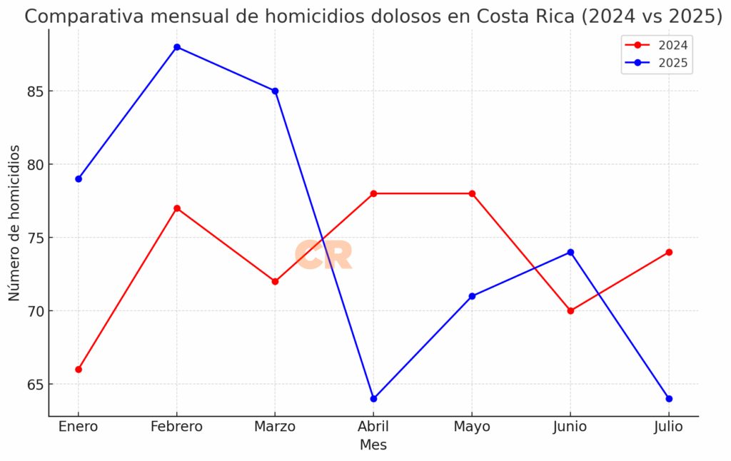 Costa Rica registra al 29 de julio de 2025 un total de 507 víctimas por homicidio doloso, la misma cifra alcanzada en el mismo periodo de 2024, según datos oficiales.