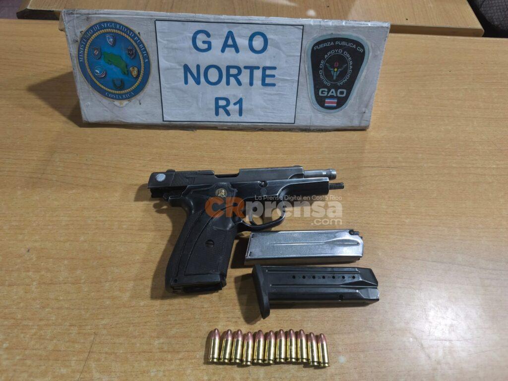 Lo anterior debido a que la Fuerza Pública fue alertada por el Centro de Monitoreo de la Municipalidad de Goiocoechea acerca de que un sujeto, pistola en mano, andaba amenazando a los transeúntes por el supermercado Purral.
