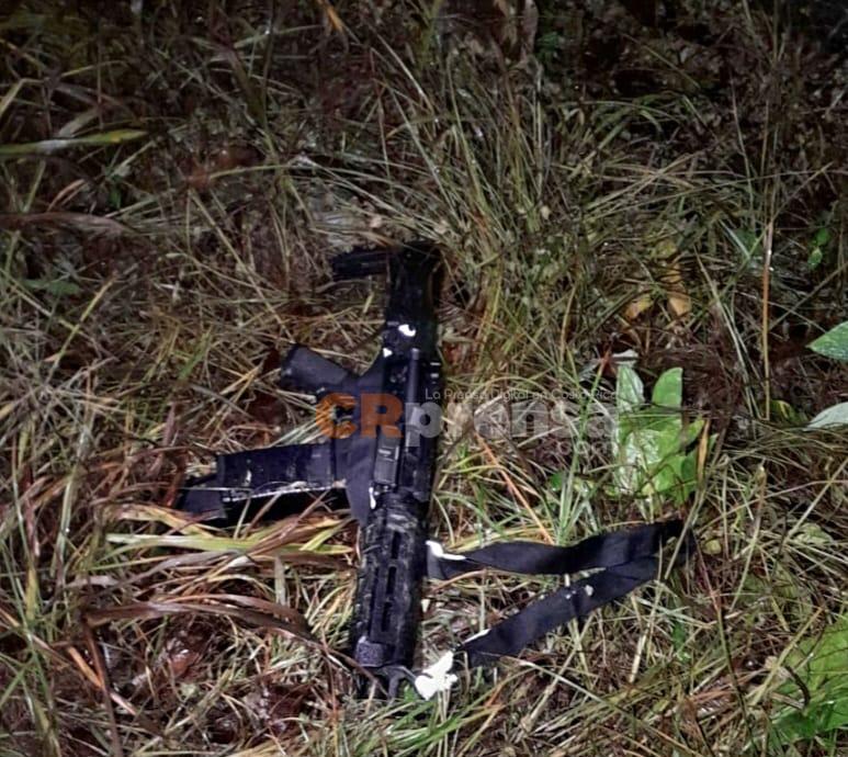 Y en la parte posterior de la vivienda, en un sector montañoso, la Fuerza Pública localizó un arma de fuego tipo AR 15, un arma corta, una escalera y una persona con pasamontañas que al parecer se encontraba fallecida.