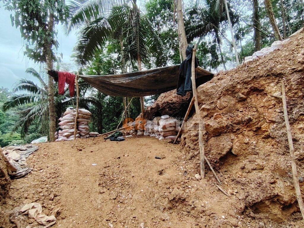 En el sitio la policía también localizó unos 10.000 sacos vacíos y 18 piletas de cianuro con su respectivo sistema de filtración, con aparente cianuro y cargada con sedimento.