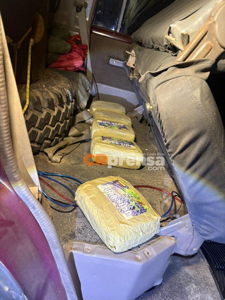 Minutos después, personal del Organismo de Investigación Judicial (OIJ) se presentó en el sitio y, tras la revisión del vehículo, se localizó un total de cinco paquetes de droga tipo marihuana.