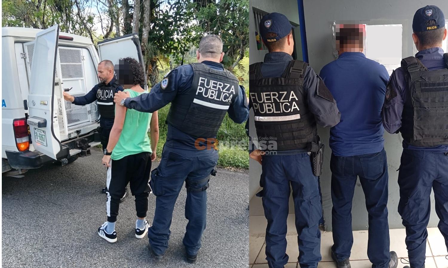 Oficiales de la Fuerza Pública, destacados en el cantón de Coto Brus, frontera sur, detuvieron a dos sujetos, los cuales se encontraban prófugos de la Justicia, tras presuntamente cometer diversos delitos.