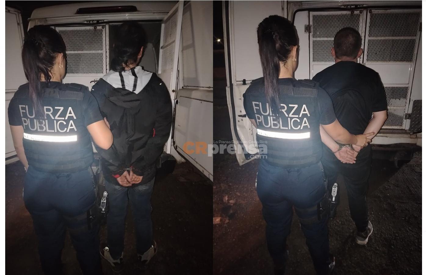 Al dirigirse al sitio indicado, los oficiales observaron a dos individuos que salían corriendo del local comercial, abandonando un vehículo en el lugar. Inmediatamente se solicitó apoyo a la Fuerza de Tarea del sector, lo que permitió realizar un cerco y capturar a los sospechosos, identificados con los apellidos García y Bogantes.