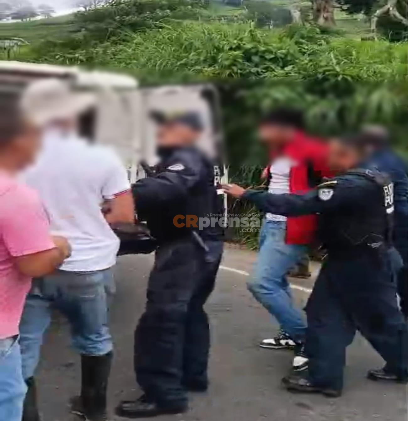 Gracias a la acción oportuna de la Fuerza Pública del cantón, los sospechosos fueron localizados e interceptados frente a la Panadería Ale, mientras se desplazaban hacia la zona de Laguna. A pesar de intentar darse a la fuga, no lograron evadir a los oficiales, quienes procedieron a su detención.