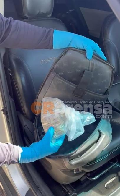 En el auto viajaba, en calidad de acompañante, un sujeto de apellido Angulo, quien llevaba un bolso de espalda en cuyo interior los oficiales encontraron lo que en apariencia era marihuana.
