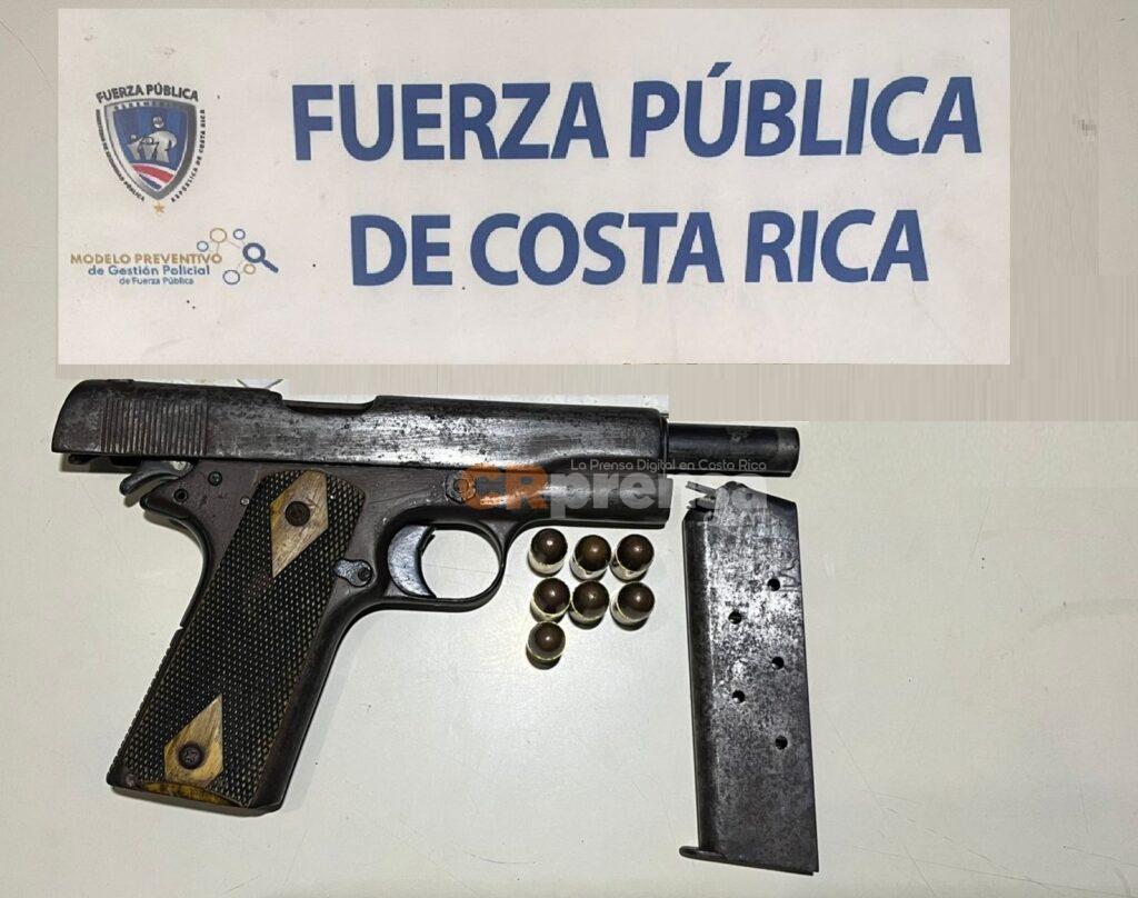 Uno de los casos ocurrió en San Gabriel de Aserrí, cuando la Fuerza Pública fue alertada acerca de que, dentro de un bar ubicado en Babilonia de La Fila, un sujeto en posible estado de embriaguez estaba exhibiendo un arma de fuego, por lo que de inmediato los oficiales se desplazaron al sitio y encontraron a un hombre de apellido Marín con una pistola calibre 9 m.m y un cargador con 14 proyectiles.