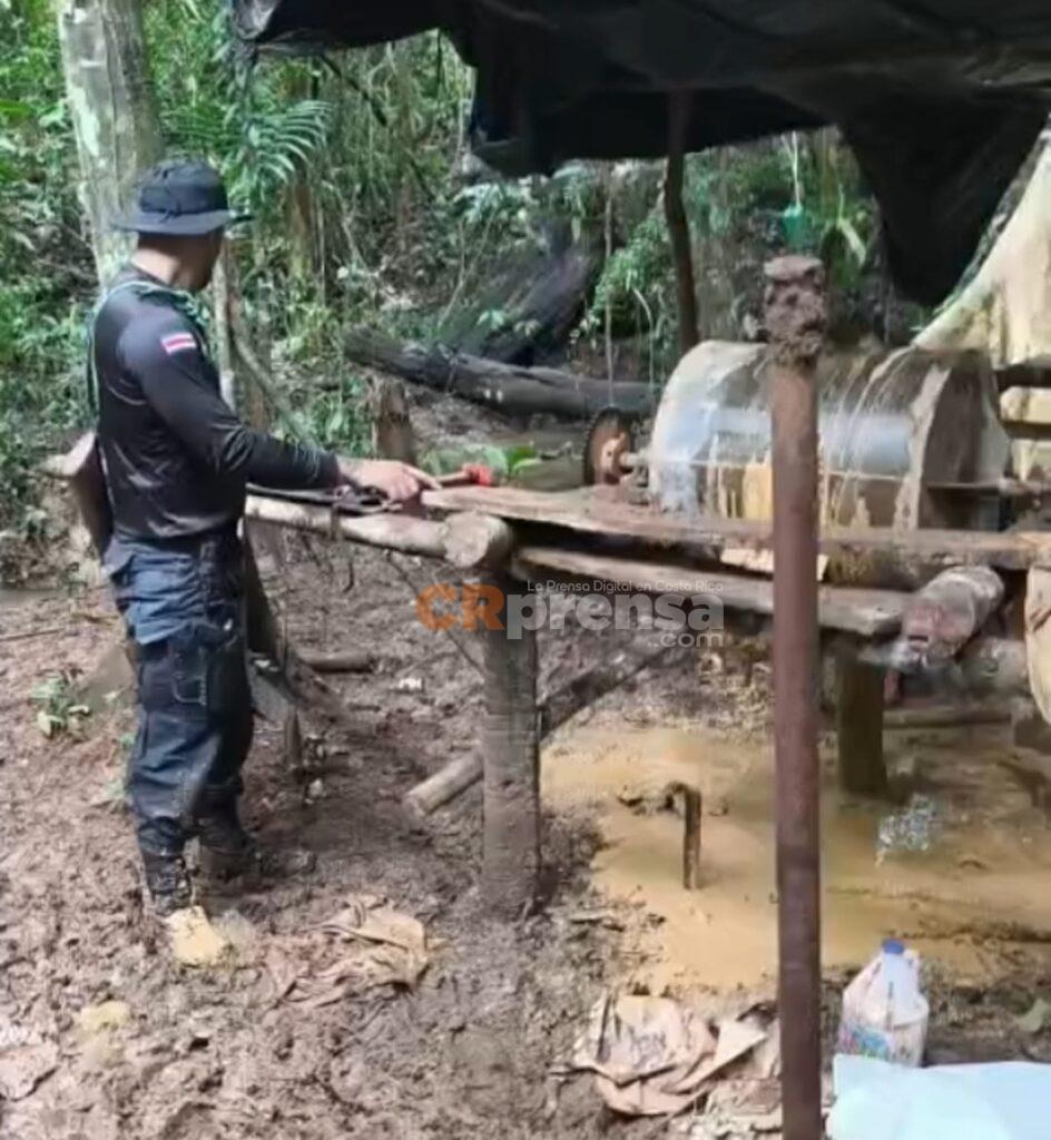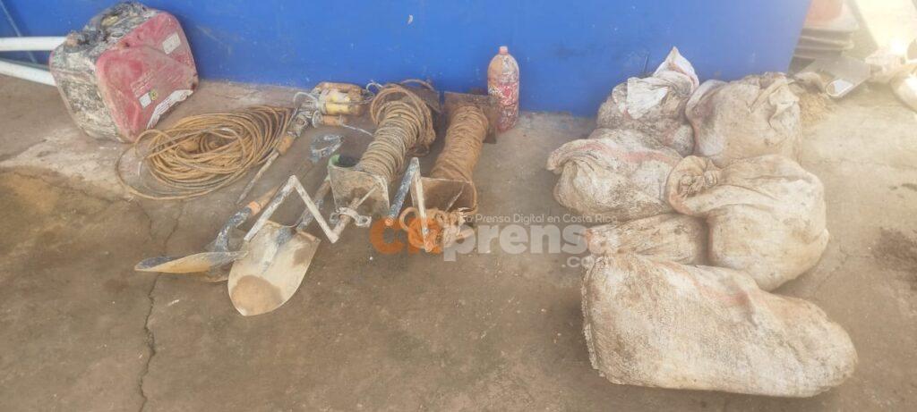 Lo anterior gracias a patrullajes preventivos, los cuales permitieron llegar en el momento preciso en que las organizaciones criminales que operan en Crucitas tenían listos 10 sacos con sedimento, el cual iba a ser sacado de la zona para ser procesado en algún otro sitio a fin de extraerle el oro.