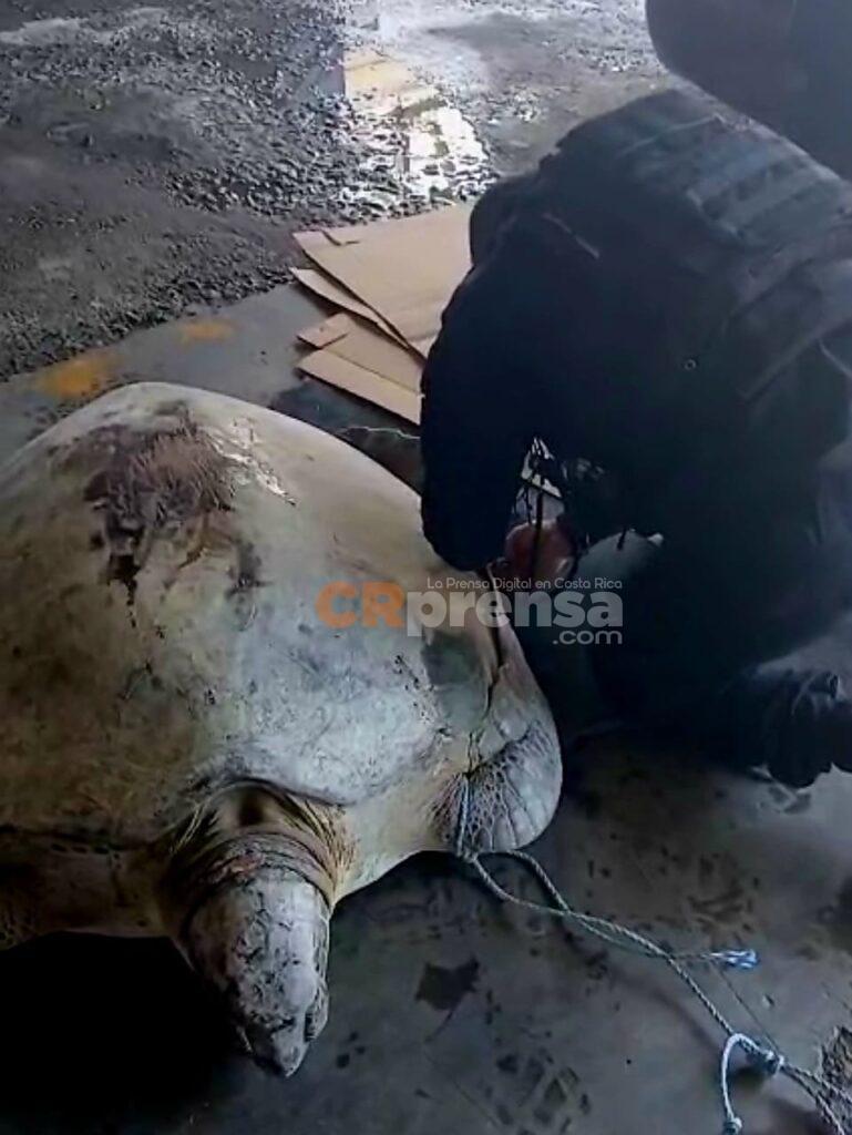 Asimismo, los efectivos policiales informaron que las dos tortugas marinas fueron entregadas a personeros del Sistema Nacional de Áreas de Conservación (SINAC).