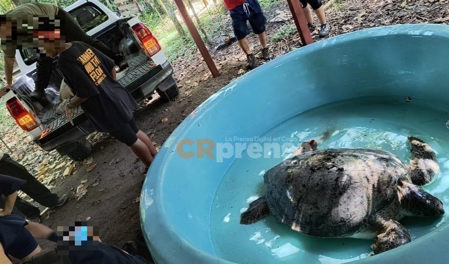 Hoy, los oficiales del Grupo de Apoyo Operacional (GAO) de la Fuerza Pública, dirección policial adscrita al Ministerio de Seguridad Pública, rescataron dos tortugas marinas y aprehendieron a dos personas.