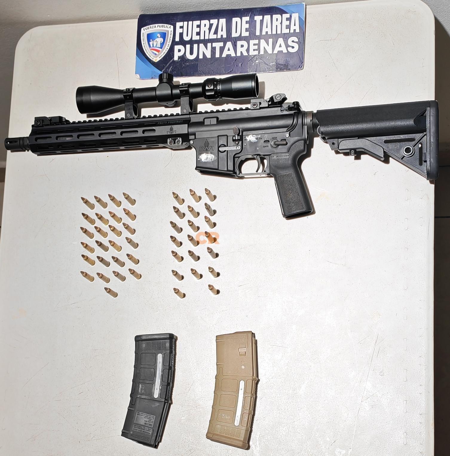 En la revisión de la propiedad se ubica un AR-15 con la serie pomada, dos cargadores y 45 proyectiles sin percutar.
