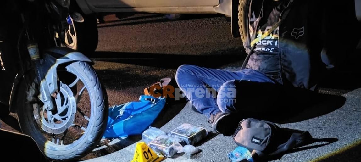 La Policía narró que el hecho se presentó en Los Cuadros de Purral en Goicoechea, donde los oficiales observaron a un persona correr y en el trayecto hallaron una bolsa plástica.