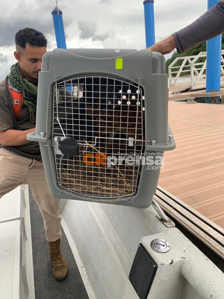El animalito se encontró sin su madre, por lo que de inmediato los oficiales se dieron a la tarea de atraparlo sin que corriera peligro. Una vez realizada esta maniobra, se le introdujo en una jaula y fue trasladado por una embarcación de Guardacostas hasta Puntarenas, donde posteriormente fue llevado hasta el Centro de Rescate de Vida Silvestre (antiguo Zooave) en Alajuela.
