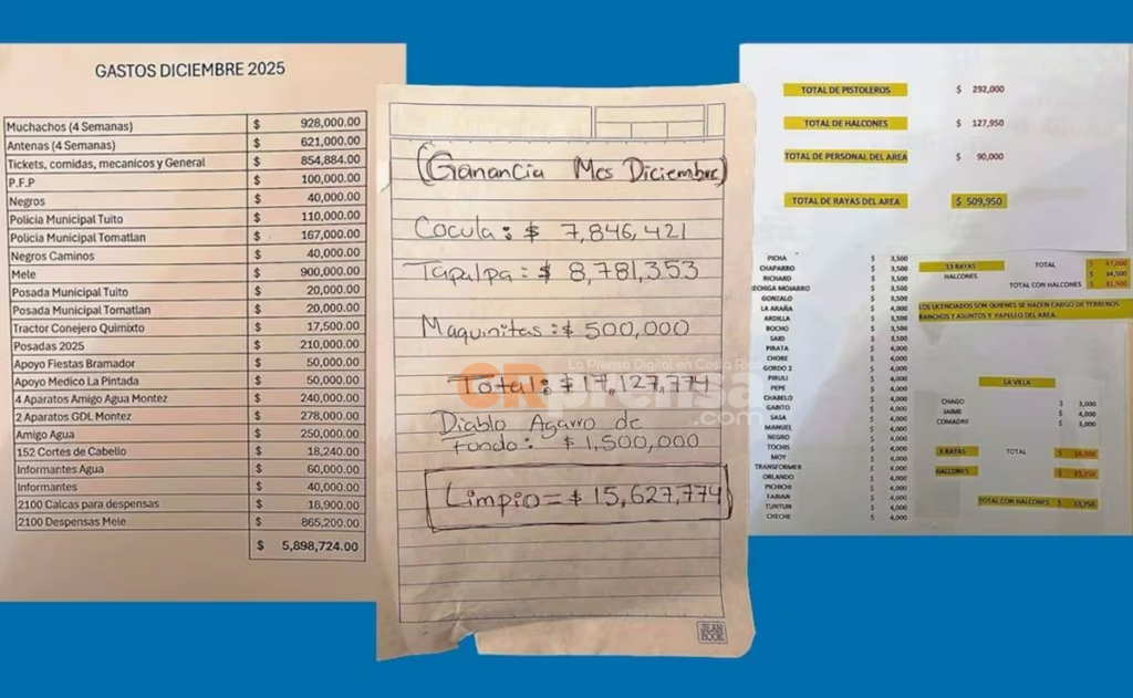 De acuerdo con reportes periodísticos, los documentos muestran cifras monetarias que alcanzan millones de pesos en periodos mensuales y corresponden a actividades ilícitas como la venta de drogas, cobros y pago de personal dentro de la organización.