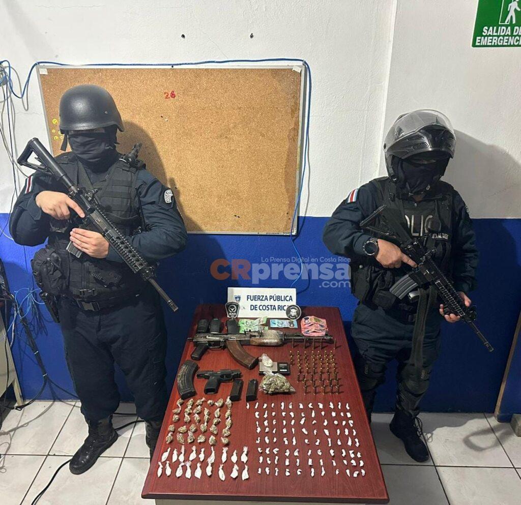 Oficiales de la Fuerza Pública, de Alajuela junto al Grupo de Apoyo Operacional (GAO) y la Fuerza de Tarea, intervinieron el sector conocido como La Huesera, en Los Pinos, tras recibir reportes que alertaban sobre la presencia de entre cuatro y cinco sujetos armados que amenazaban a vecinos del lugar.