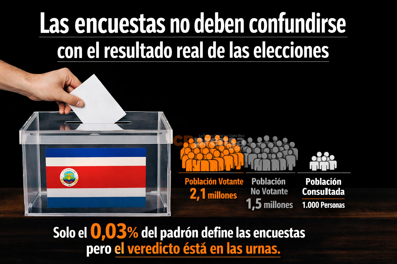 Las encuestas no son falsas ni inútiles, pero tampoco son el resultado de una elección. Su alcance es limitado por el tamaño de la muestra, la alta no respuesta y la complejidad del electorado costarricense. En última instancia, el único dato concluyente será el que surja de las urnas el día de la votación, cuando participe —o se abstenga— la población que no aparece en ningún cuestionario.