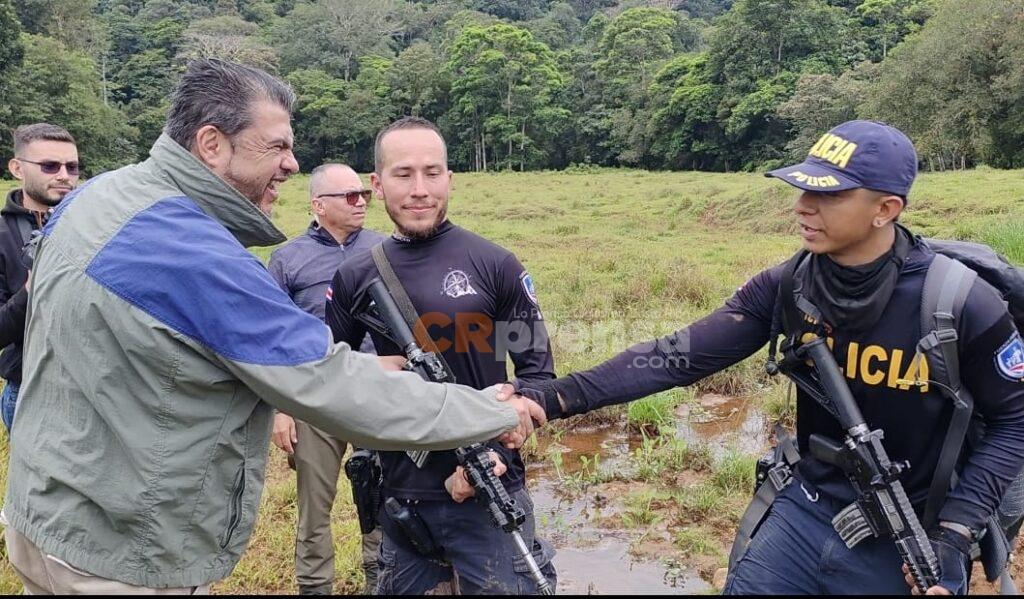 El jerarca estuvo en Crucitas donde informó la aprehensión de 20 personas conocidas como “coligalleros”, se ubicaron 20 tiendas artesanales, conocidas como “champas” dentro de un campamento y tres plantas eléctricas.