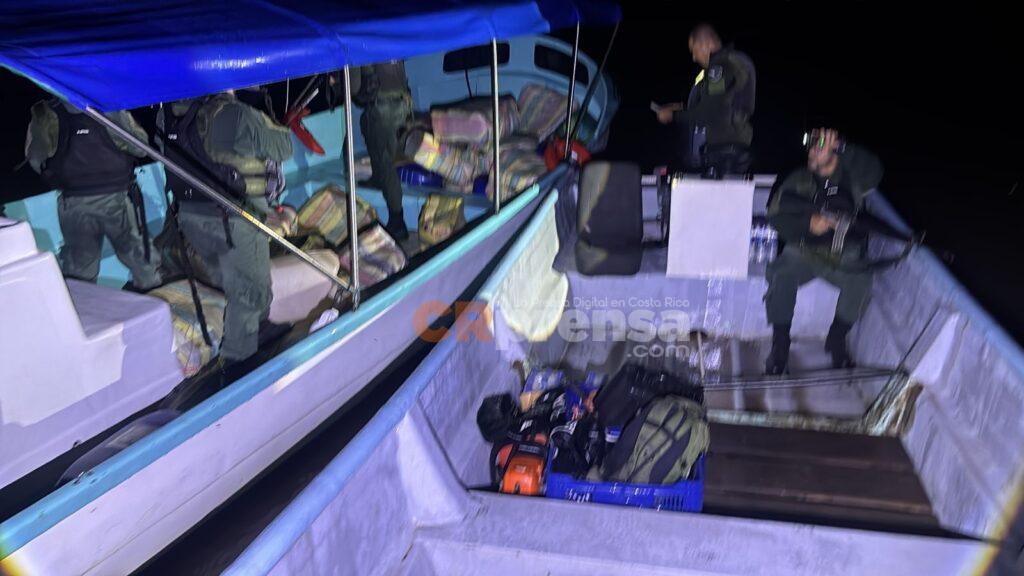 En una acción policial articulada entre los distintos cuerpos policiales del Ministerio de Seguridad Pública, durante la tarde y noche de ayer lunes, se logró el decomiso de una embarcación con 825 paquetes de marihuana, en aguas del Pacífico Sur.