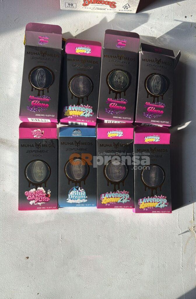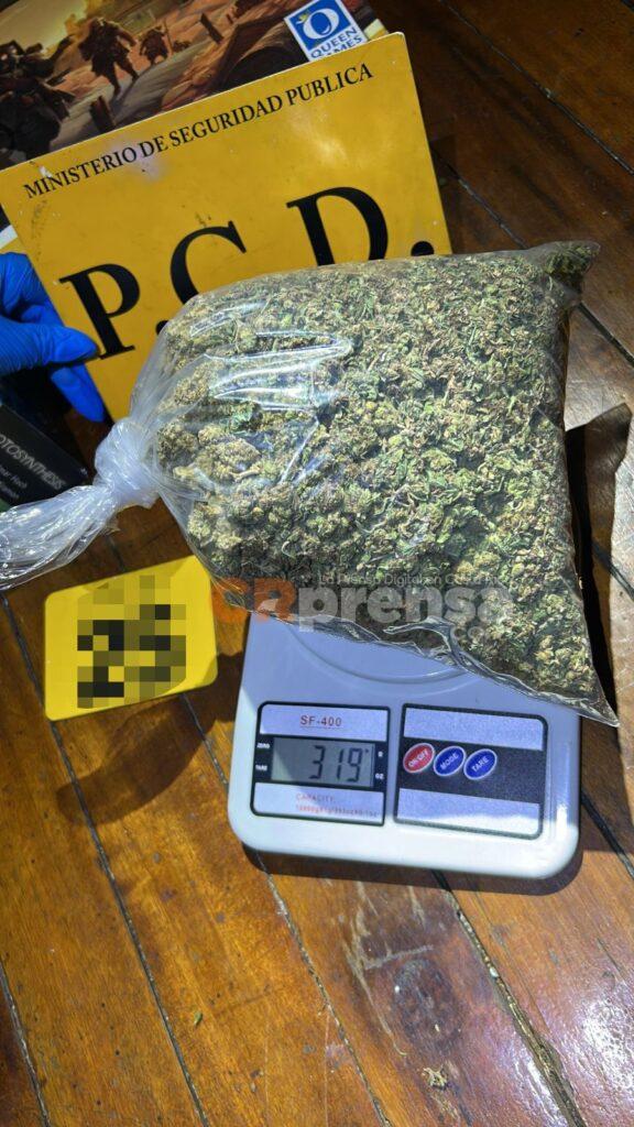 Dentro de lo decomisado por las autoridades antidrogas se ubicó un total de cuatro kilos de marihuana, 60 gomitas con THC, 8 vaporizadores con THC, una dosis de aparente hachís, 6 bolsas y un frasco con aparente éxtasis, dos bolsas con aparentes hongos alucinógenos, seis bolsas y un frasco con aparentes drogas sintéticas con un peso total de 17 gramos.