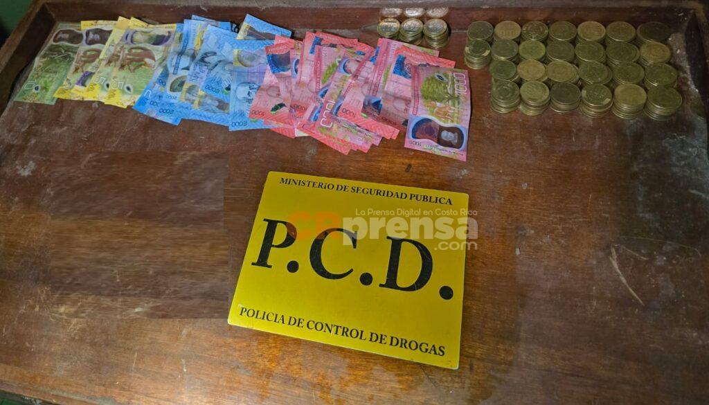 Como parte de las evidencias incautadas contra dichas personas, la PCD les decomisó 12 dosis y 4.2 gramos de cocaína base crack, 1.17 gramos de cocaína, un cigarrillo de marihuana, varios implementos para la dosificación y pesaje de las drogas, así como 139.300 colones, presuntamente producto de la venta de dichas sustancias.