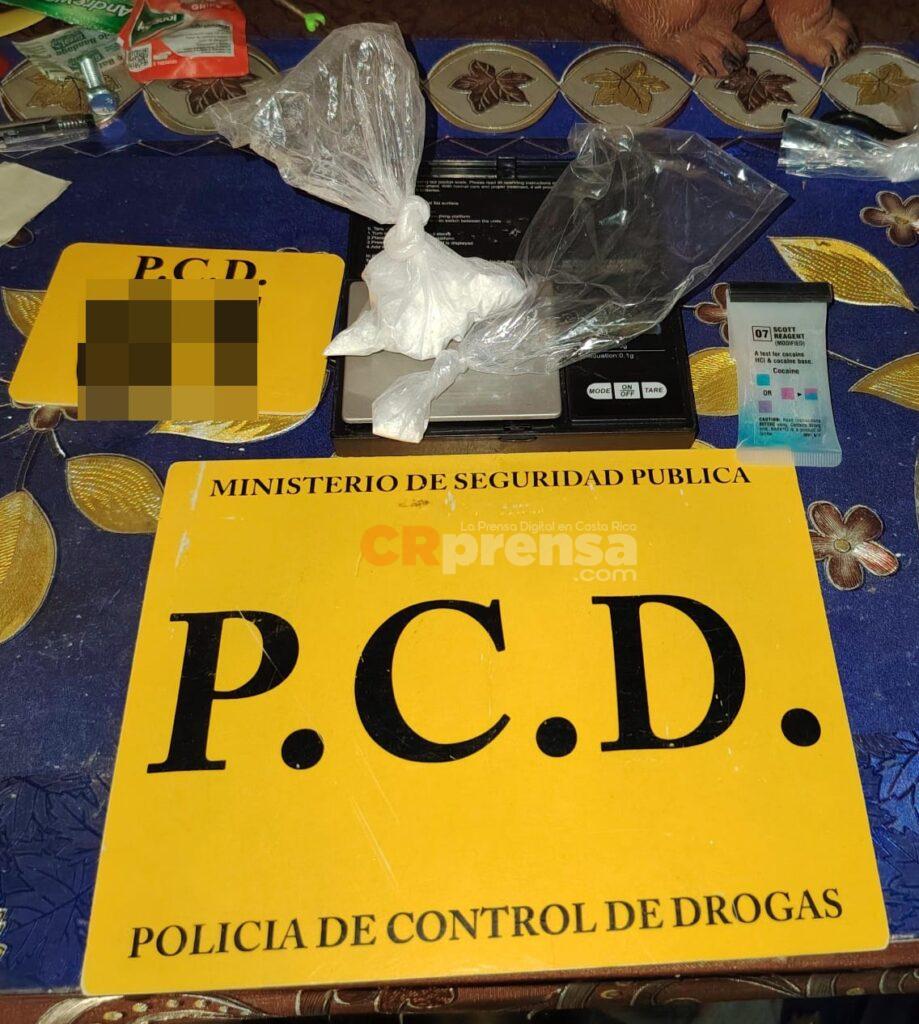 La PCD allanó una vivienda en el distrito de Barranca, Puntarenas, donde detuvo a dos hombres que se dedicaban a la venta y distribución de drogas en el lugar; son de apellidos Ordoñez Ulate, alias “Pescado”, con pasadas por tenencia de drogas, y Ramos Marín, alias ”Chino Marín”, con antecedentes por robo con violencia sobre las personas, receptación, hurto simple y tenencia de drogas.