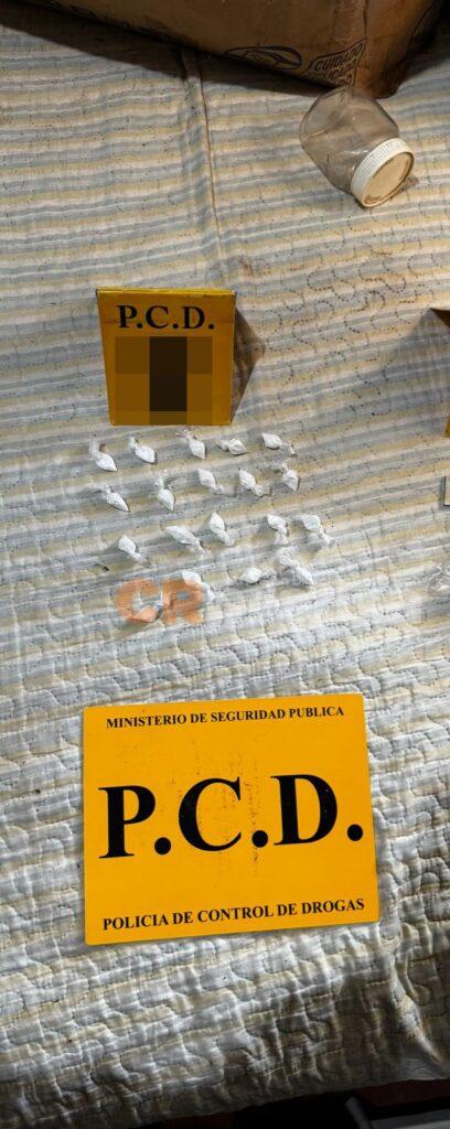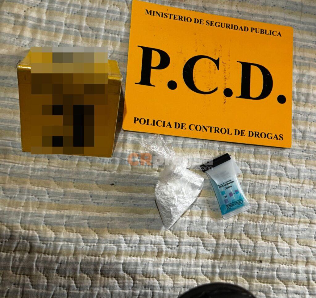 La PCD allanó una vivienda en el distrito de Barranca, Puntarenas, donde detuvo a dos hombres que se dedicaban a la venta y distribución de drogas en el lugar; son de apellidos Ordoñez Ulate, alias “Pescado”, con pasadas por tenencia de drogas, y Ramos Marín, alias ”Chino Marín”, con antecedentes por robo con violencia sobre las personas, receptación, hurto simple y tenencia de drogas.