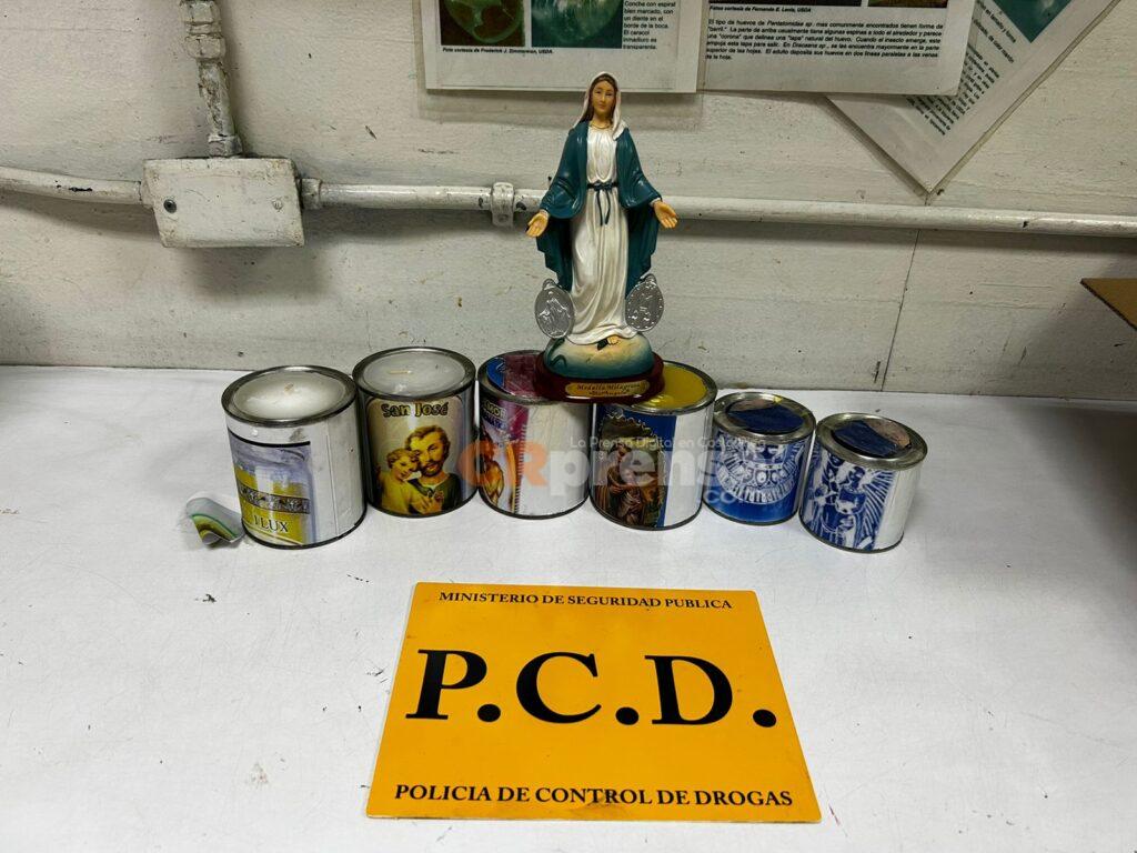 Las mujeres camuflaban la cocaína en piezas religiosas, suvenires, cilindros metálicos y otros artículos. En ambos casos se logró decomisar más de cuatro kilos de esta sustancia psicoactiva.