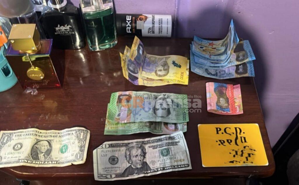 Producto de la intervención policial, se decomisaron 16 dosis y 12 gramos de crack, diez envoltorios y 79 gramos de marihuana, cinco gramos de cocaína, 135 mil colones, 24 dólares y utensilios para la preparación y dosificación de drogas.