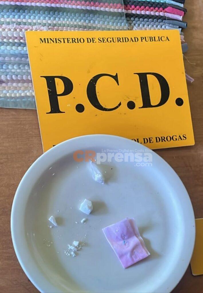 Producto de la intervención policial, se decomisaron 16 dosis y 12 gramos de crack, diez envoltorios y 79 gramos de marihuana, cinco gramos de cocaína, 135 mil colones, 24 dólares y utensilios para la preparación y dosificación de drogas.