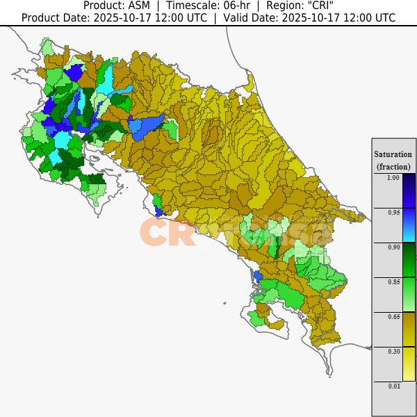 Advertencia: Se mantienen saturación de suelos muy alta en Guanacaste, la Zona Norte, Valle Central, Garabito y Pacífico Sur. Estas condiciones incrementan la susceptibilidad a deslizamientos, inundaciones repentinas y desbordamiento de ríos y quebradas. Se recomienda prestar especial atención en zonas urbanas debido al posible colapso del sistema de alcantarillado pluvial y bancos de neblina.