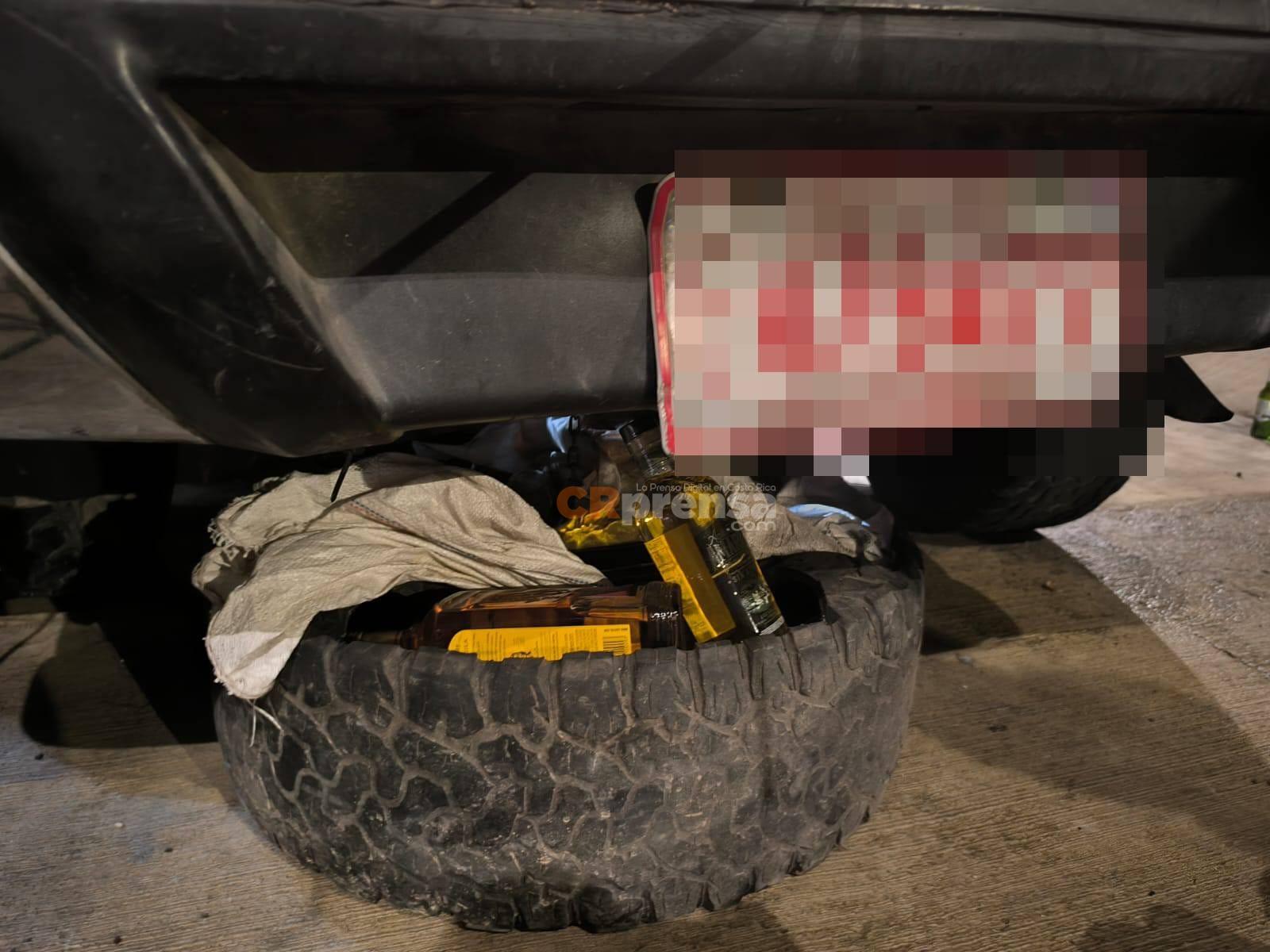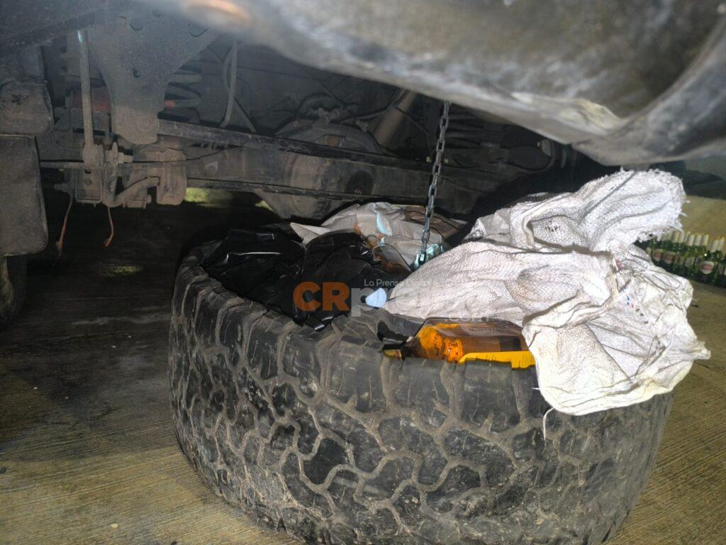 Mediante formas de ocultamiento similares a las usadas por las organizaciones narcotraficantes para esconder drogas, un sujeto pretendió burlar a las autoridades al ocultar más de mil envases de licores sin importar que algunas de las botellas explotaran con el calor del motor.
