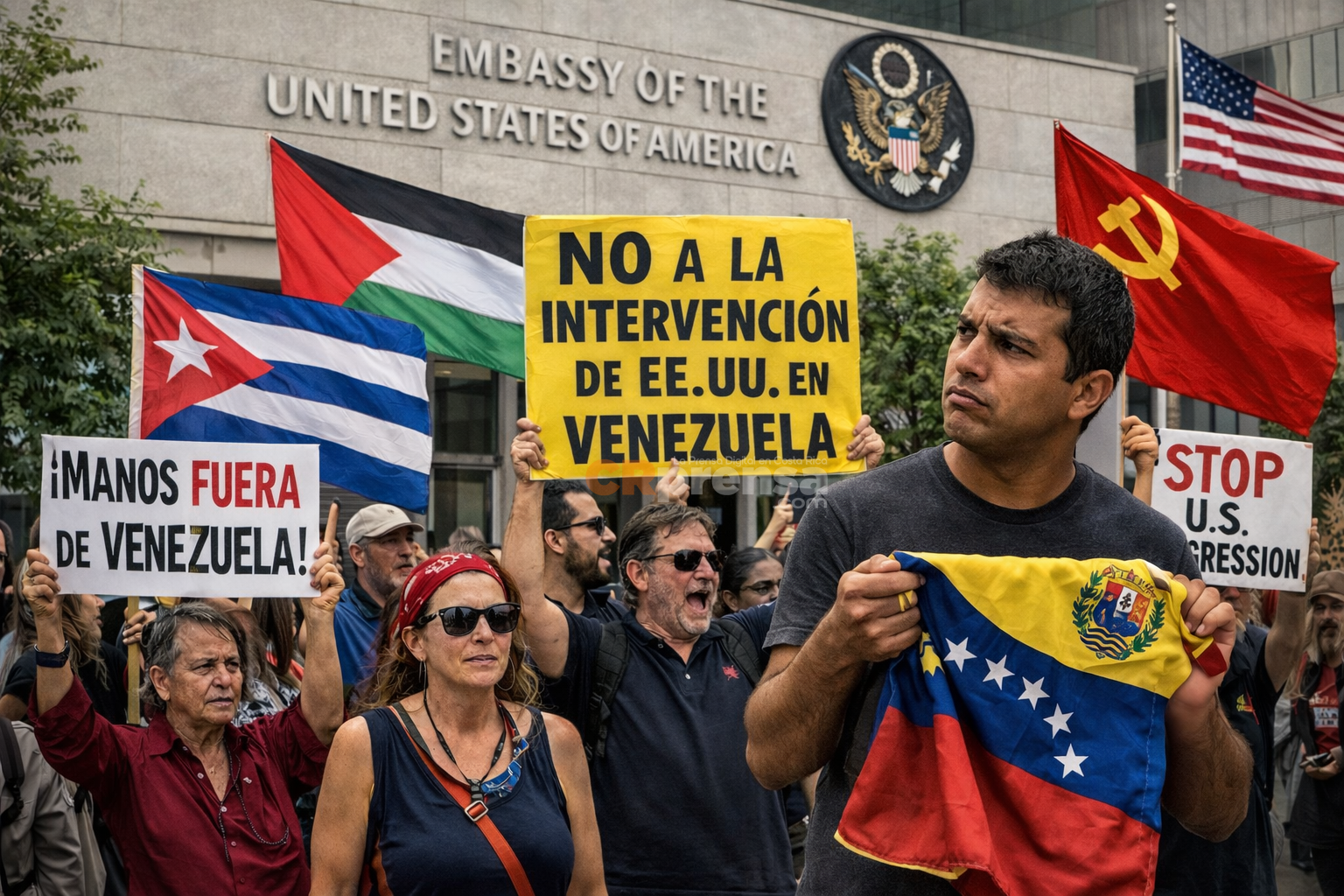 En varias ciudades de Europa y América Latina se han registrado protestas frente a embajadas y consulados de Estados Unidos en rechazo a la operación militar estadounidense en Venezuela y la captura del presidente Nicolás Maduro. Las manifestaciones han llamado la atención porque, en la mayoría de los casos, la participación de ciudadanos venezolanos ha sido mínima o prácticamente inexistente, predominando colectivos locales y organizaciones sociales de otros países.