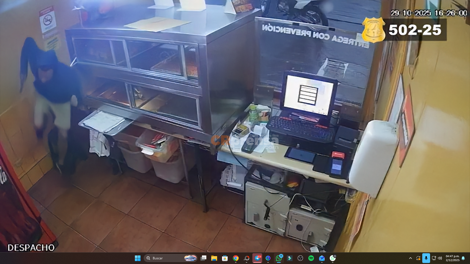 Los hechos ocurrieron el 19 de octubre del 2025 a las 4:26p.m. en Desamparados, en San José, cuando en apariencia el sospechoso ingresó a un local de venta de pollo y al parecer amenazó con un arma al dependiente y aparentemente sustrajo el dinero de la caja registradora.