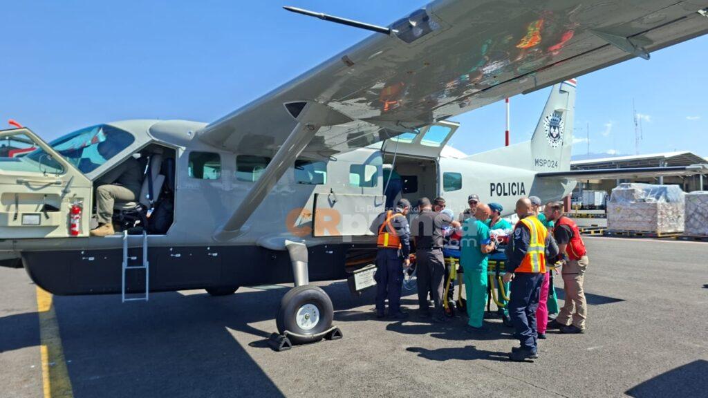 Debido a la condición de la menor, se determinó su traslado aéreo hacia el centro del país, siendo llevada hasta Base Dos del Aeropuerto Internacional Juan Santamaría.