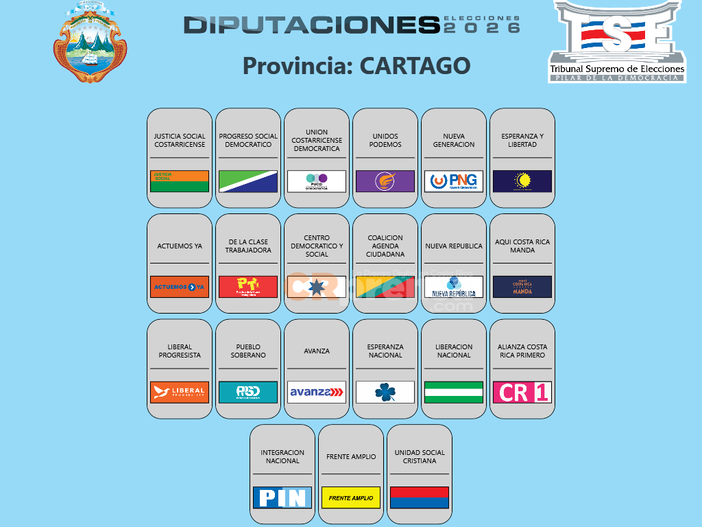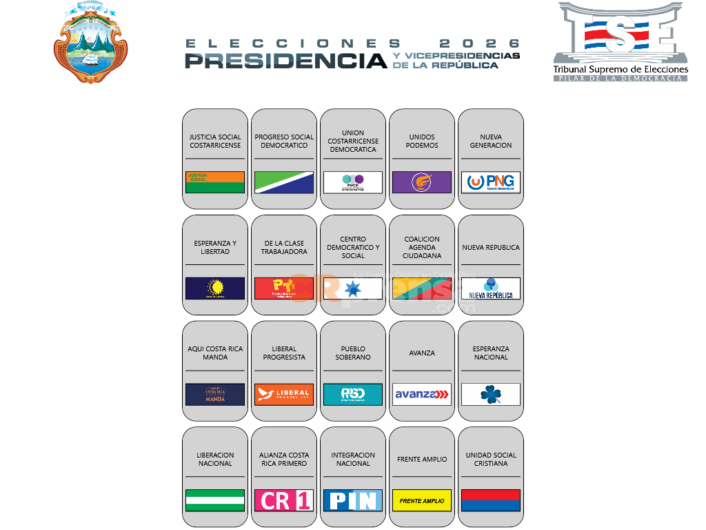 Este miércoles a las 10 de la mañana, en el auditorio del Tribunal Supremo de Elecciones (TSE), se realizó el sorteo para definir la ubicación que tendrán los partidos políticos en las papeletas que serán utilizadas en los próximos comicios nacionales, a celebrarse el 1° de febrero del 2026.
