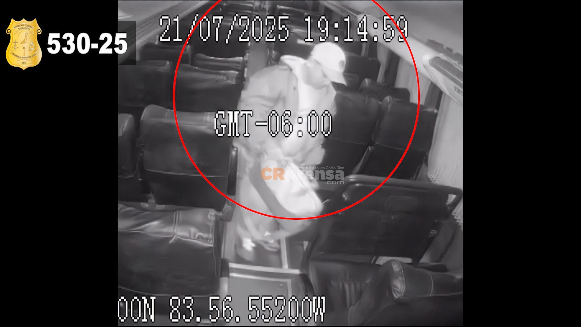 Los hechos ocurrieron el 21 de julio del 2025 a las 9:21 p.m. en Cerro de la Muerte, cuando en apariencia el sospechoso subió a un autobús y posteriormente aprovechó la distracción de una femenina para aparentemente hurtar su bolso.
