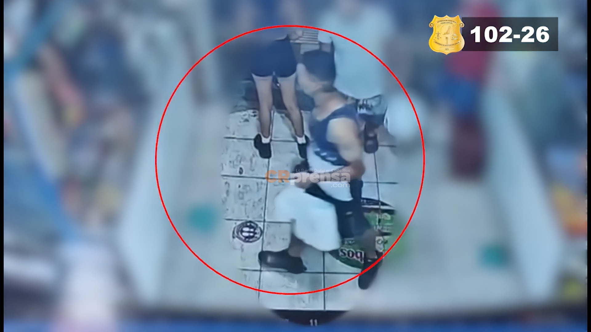 Sospechoso: Masculino, tez trigueña, contextura delgada, cabello corto color negro, de 1.70m a 1.75m de estatura aproximadamente, vestía camiseta de tirantes color azul en la parte superior y color blanco en la parte inferior, pantaloneta color negro y tenis color negro.